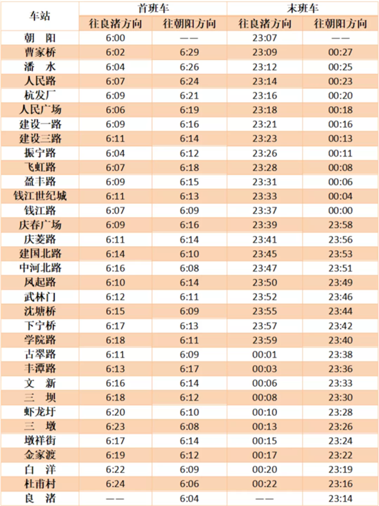 6号线 首末班车时间