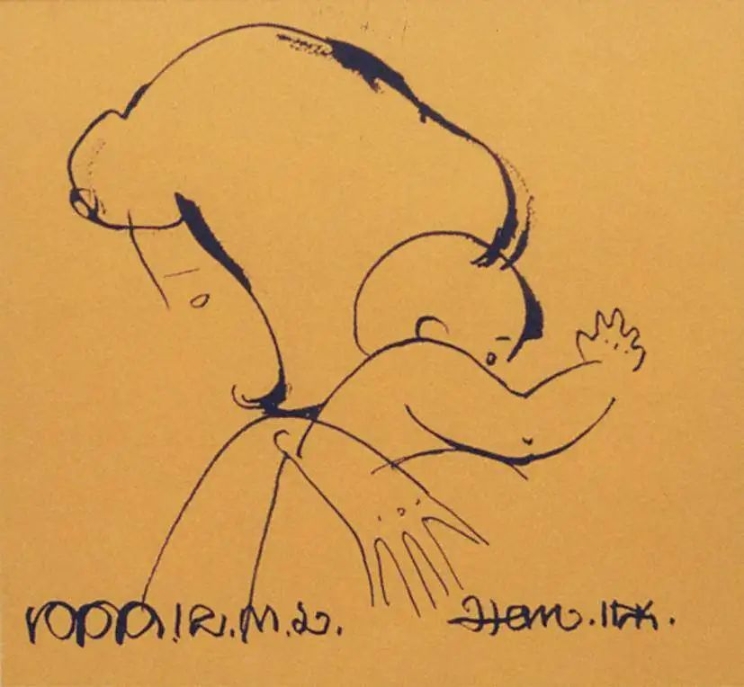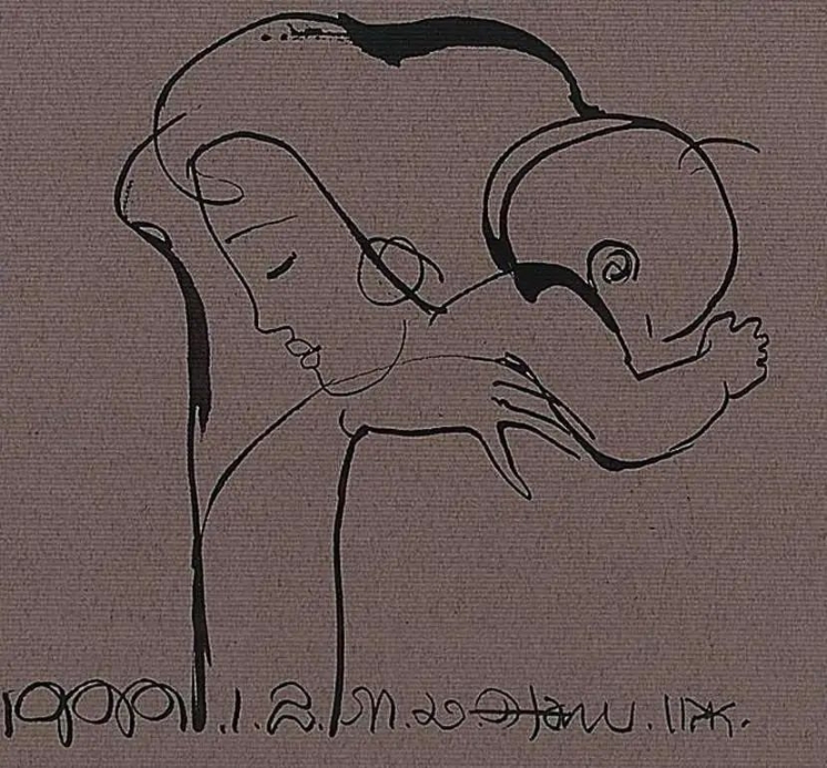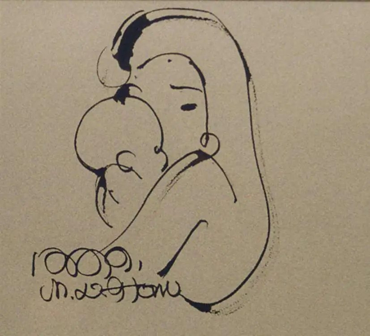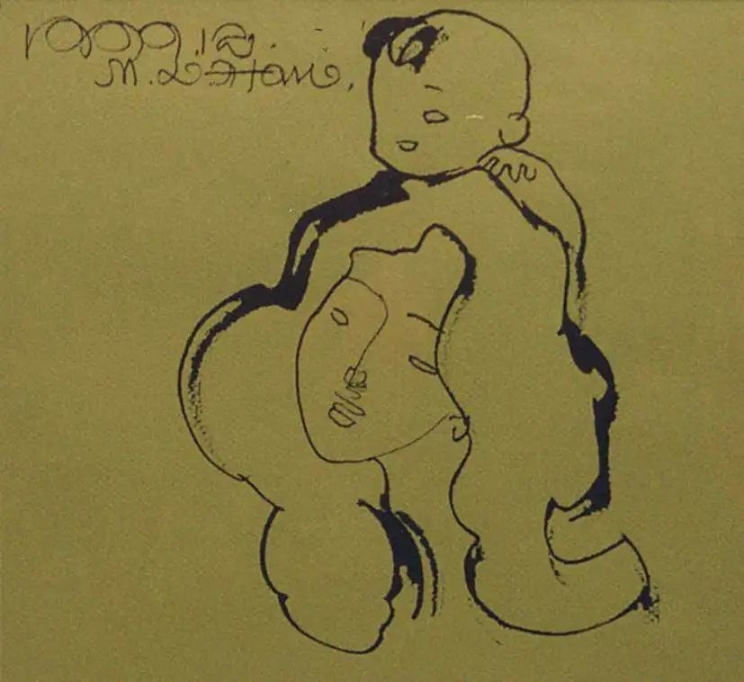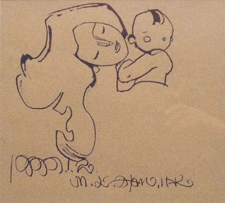 韩美林母与子手稿