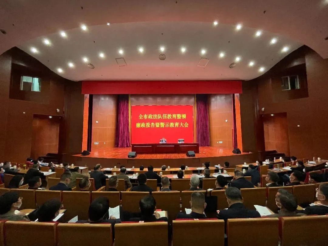 市委常委、市纪委书记、市委政法队伍教育整顿领导小组副组长陈擎苍为全市政法队伍作廉政教育报告。