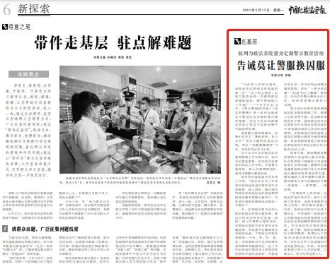 5月17日,《中国纪检监察报》刊登《杭州为政法系统量身定制警示教育活动 告诫莫让警服换囚服》一文。自全市政法队伍教育整顿工作开展以来,杭州市纪委市监委做了哪些工作?又取得了哪些成效?让我们一起来看看吧~