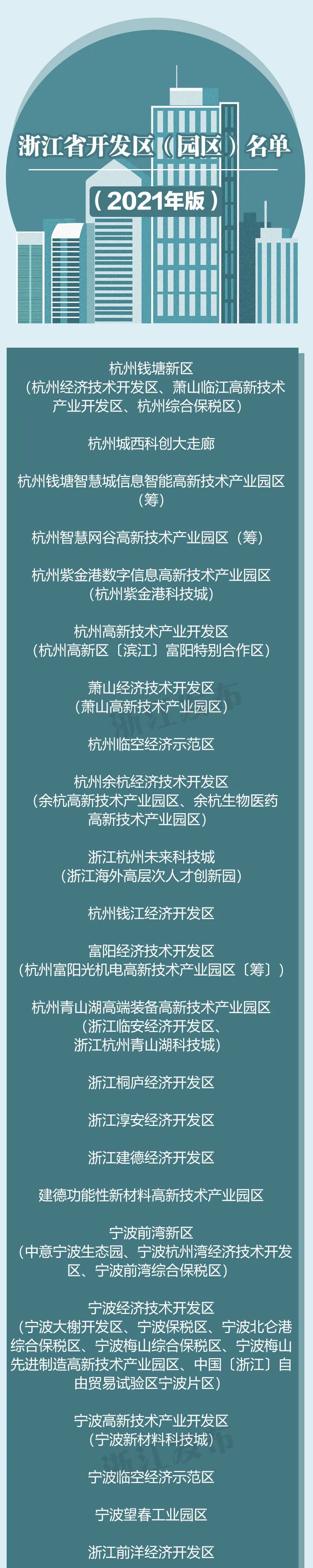 浙江对各类开发区(园区)进行了整合提升,形成《浙江省开发区(园区)名单(2021年版)》,并于近日公布,全省开发区(园区)总数整合为134个。