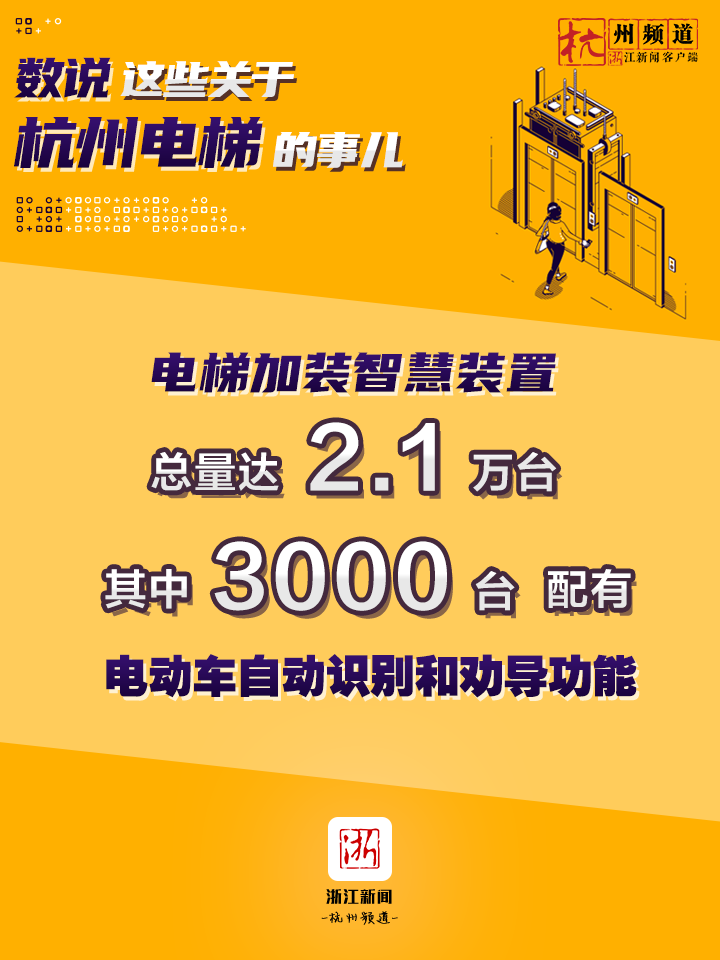 同时,很多电梯加装了智慧装置,总量已达到2.1万台。其中,3000台智慧装置配有电动车自动识别和劝导功能;826台乘客电梯配备电梯智慧系统并接入杭州全市平台,具备运行参数采集、信息网络传输、自动报警、实时通话等功能,可以实时监测电梯困人等故障隐患,有效预防电梯事故。