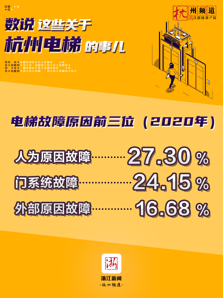 据统计,电梯故障原因前三位分别是人为原因故障、门系统故障和外部原因故障。