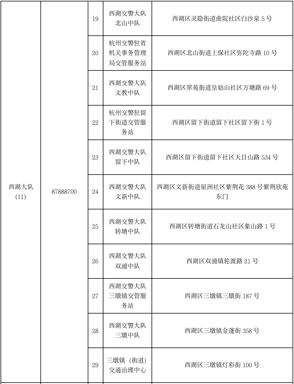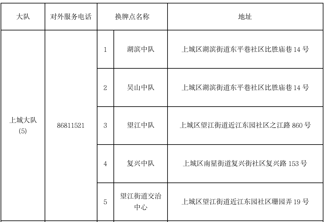十五、各交警大队电子号牌换牌点通过预约办理,具体点位信息如下: