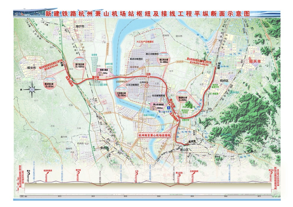 铁路杭州萧山机场站枢纽及接线工程是沪乍杭铁路和杭绍台铁路的重要组成部分,是实现杭州铁路枢纽“一轴两翼”过江通道布局、提升枢纽地位与能力的重要基础设施,也是实现高铁进杭州萧山国际机场、构建空铁联运体系的重要项目。