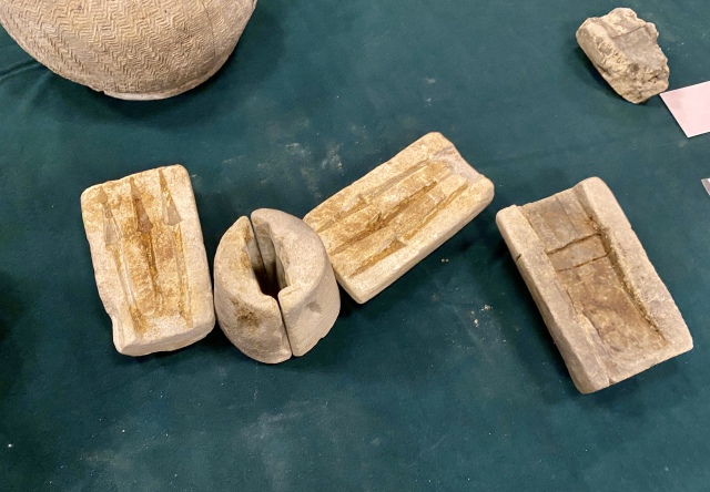 现场有几件文物人气非常高,譬如石范。范,古代铸造用铸型的一种;石范,顾名思义,就是用石头做的模具。