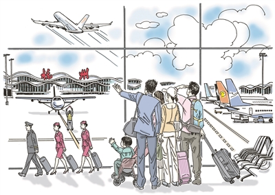 新机场正式通航前,张兴桥特地带家人到机场转了一圈。