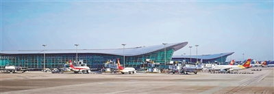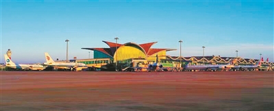 昔日蓝图已照进现实:站在停机坪上,长3600米、宽60米的跑道和宽45米的等长滑行道一眼望不到边。晶莹剔透的候机楼、碧树掩映的绿化带、水波荡漾的人工湖……一切辽阔宏大,一切诗情画意。