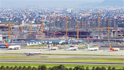 “新建的T4航站楼比现在三座航站楼总面积还要大一倍,投运后,机场设计年旅客吞吐量为9000万人次。”三期机场建设指挥部工程师杨贞德说。