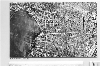 1944年的杭州航空影像图,左边是西湖。 黄煜轩 翻拍