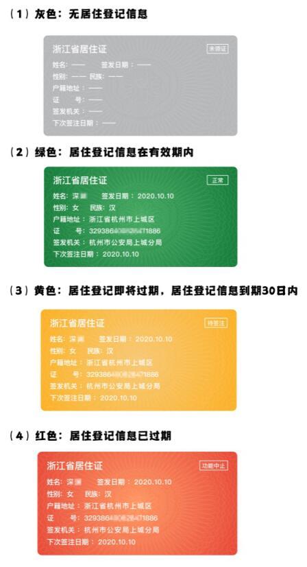 在“警察叔叔”APP中推出居住证三色标识,通过“红黄绿”三色直观提示居住证持有人证件状态。