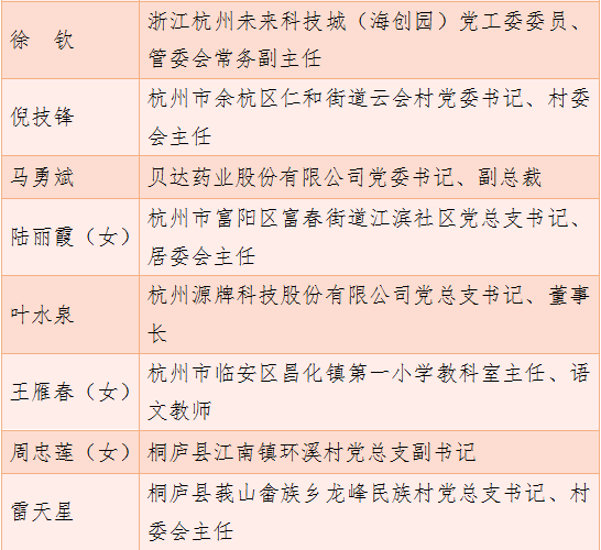 浙江省优秀共产党员拟推荐对象