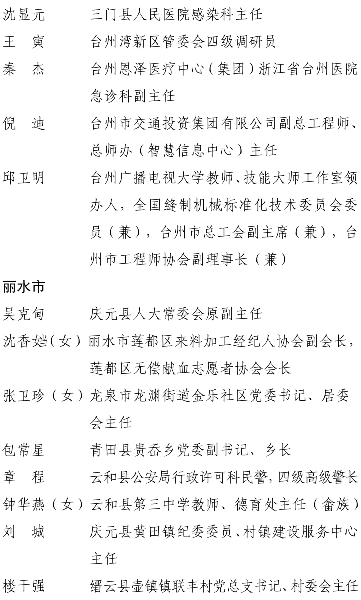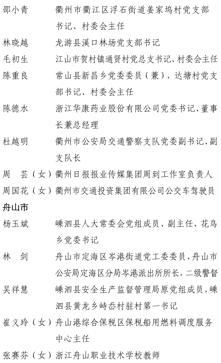 浙江省“两优一先”拟表彰对象公示