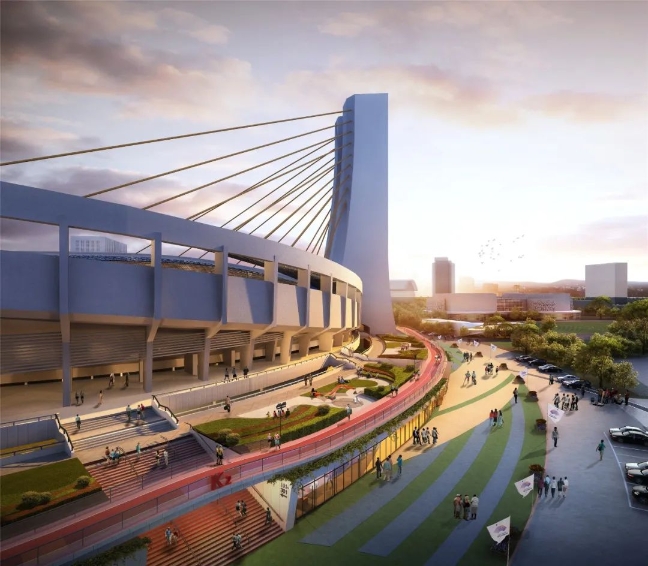 另外,体育场外围地面还将铺上SP彩绘路面,8种颜色,从空中俯瞰,黄龙体育场将拥有三层色彩,貌美!