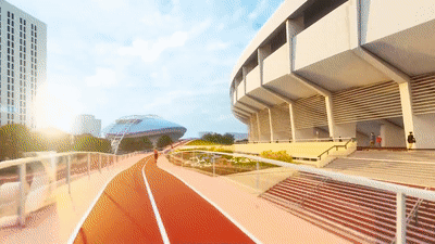 这条空中跑道还非常聪明,4个出入口,每处都会有一块显示屏,跑道沿途设有智能探测摄像头,入场跑步的市民,刷完脸,你的运动轨迹、跑步速度、体能消耗等都会显示出来。