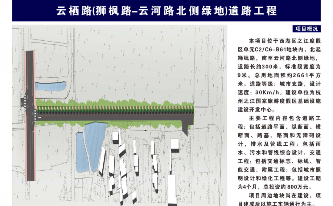 主要建设内容及规模:道路将分成三段进行提升改造,分别为德胜路-艮山东路段,德胜路-和睦港路段,和睦港-三卫路段,包括道路工程、管线工程及附属工程等。道路全长2416米,设计速度为60km/h,作为九堡地区的交通要道,该条道路提升后,将在改善道路交通、提升道路沿线居民生活品质等方面起到重要的作用。