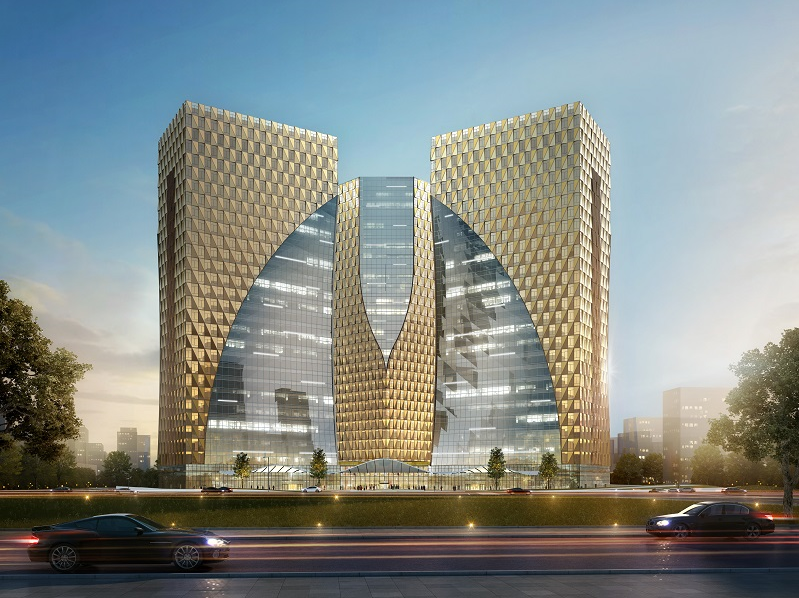 主要建设内容和规模:总建筑面积为26.35万平方米。项目是由三栋28 层主楼和二层裙房组成的高层综合办公楼。