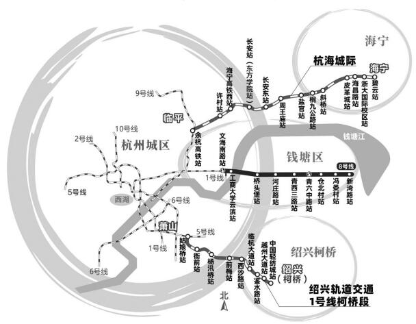 都市快报报道 昨天,杭州地铁8号线一期、杭海城际铁路、绍兴轨道交通1号线柯桥段同日通车,率先实现杭州、嘉兴、绍兴三地轨道交通网络联通。杭州都市区轨道交通线网总里程达到391公里。