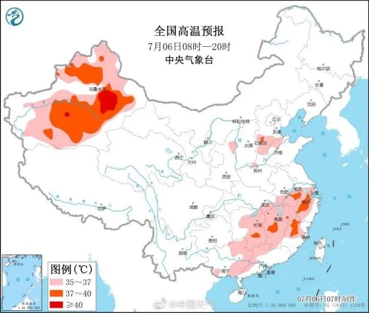 从今天的全国高温预报看,杭州已经热得发“橙”了,加上湿度还在50%左右,体感温度会更高,大家尤其要小心预防中暑,如出现头痛、头晕、口渴、多汗、四肢无力发酸、注意力不集中、动作不协调等症状,请马上找个阴凉通风处,补充水和盐分,但不要猛然进入低温空调环境,若情况严重请及时就医。