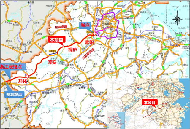 其中淳安段约97.5公里,与千黄高速共线约20公里,实际新建里程约77.5公里,主要经过临岐、左口、梓桐、姜家、浪川和汾口等6个乡镇。