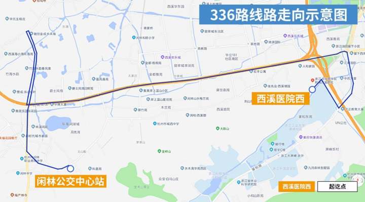 336路(西溪医院西-闲林公交中心站),主要客流是闲林一带住宅区前往留下街道、西溪医院,但因线路设计不尽合理,存在重复走向路段,且班次间隔长,乘客乘坐不便,从而致使乘客选择性下降。
