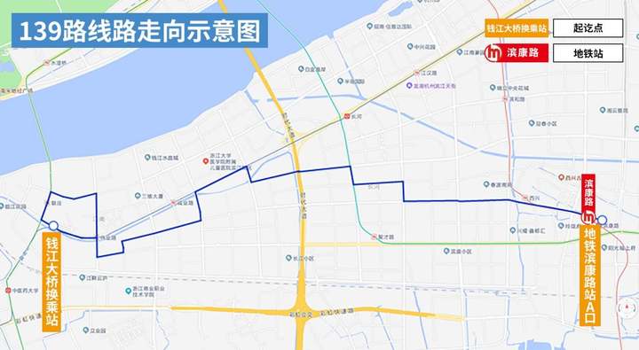 139路(地铁滨康路站A口-钱江大桥换乘站),地铁5号线开通后,该线原有的地铁接驳换乘功能下降,但早晚高峰期间仍有一定通勤客流,10点至16点间客流低迷。