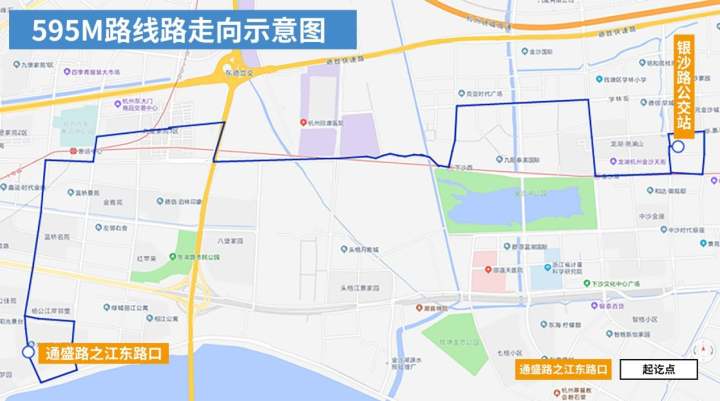 595路(通盛路之江东路口-下沙银沙路公交站),通过近一年的客流培育,悦麒美寓、阳光国际、江岸邻里等地居民选择595路前往客运中心换乘地铁或购物休闲的乘客日渐增多,但线路东段客流低迷。