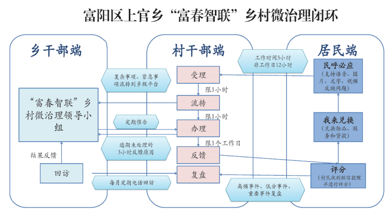 聚焦闭环治理,实现自治共育。探索推进“富春智联”乡村微治理应用场景,以群众需求为第一信号,搭建“666”工作体系。通过民呼必应、我来监督等6个功能板块,聚焦群众邻里事、急需事等6件关键小事。村民可随时通过音频、视频、图片、文字等形式反映问题,并参与评论。针对百姓反映的问题,管理后台分解业务到最小颗粒,实行民情问题受理流转办理、评分反馈回访、高频事件复盘等闭环机制,实现群众“真诉说”心声,干部“真着急”做事,有效保障群众知情权、议事权等6大权利,逐步构建“党建统领、整体智治”的基层治理体系。