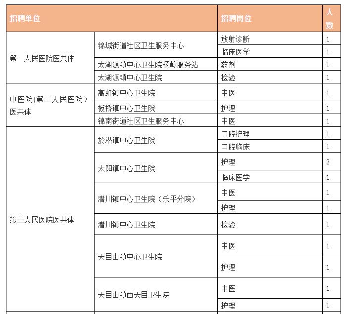 2021年临安区部分基层医疗卫生事业单位将面向社会统一公开招聘工作人员。本次公开招聘共有15家事业单位、共27个岗位,计划招聘事业编制工作人员33名, 其中定向委培临床医学岗位不定单位,由区卫健局统筹分配。