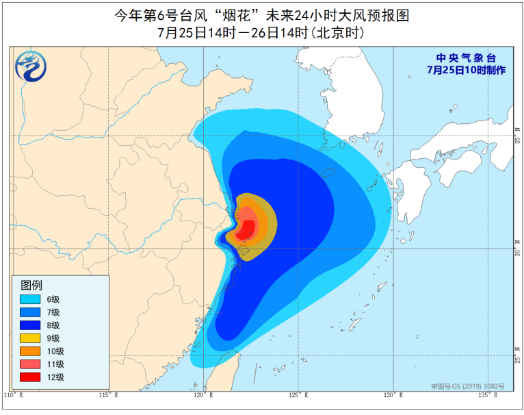 中央气象台7月25日10时继续发布台风橙色预警: