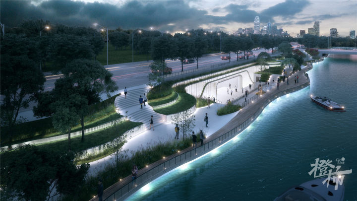 主轴的南北侧规划了几个下沉广场,将地铁站无缝整合到中央景观区,人们可以在这里喝茶、看书、会友。