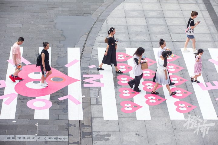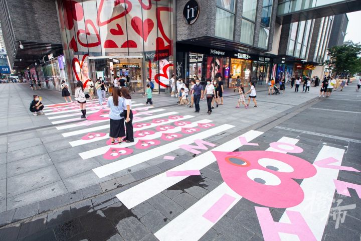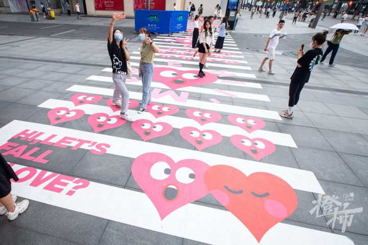 都市快报讯 “七夕”将至,杭州湖滨步行街,出现了一条“爱心”斑马线,吸引了很多年轻人前来拍照打卡。