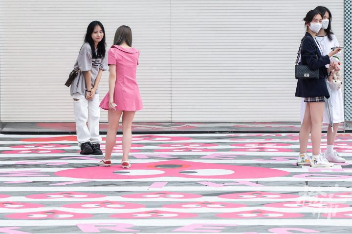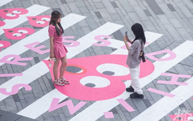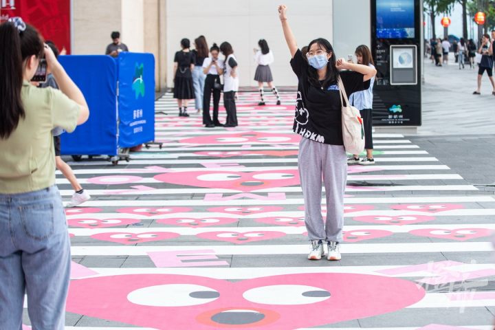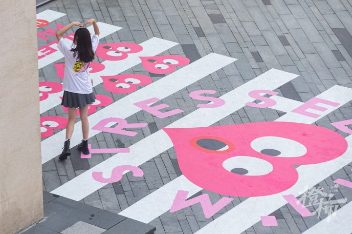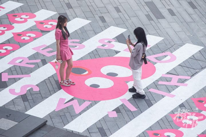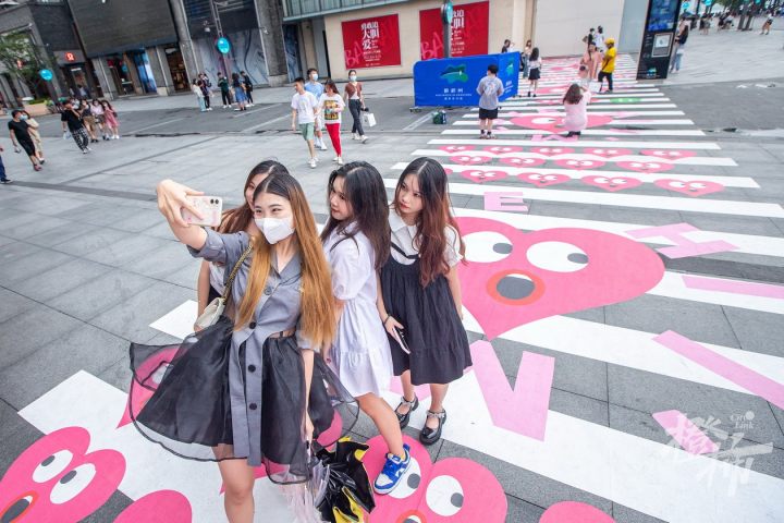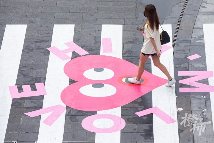 21岁姑娘小刘和朋友正在逛街,看到这里出现了“爱心”斑马线,非常兴奋,立即停下脚步,开始拍照。