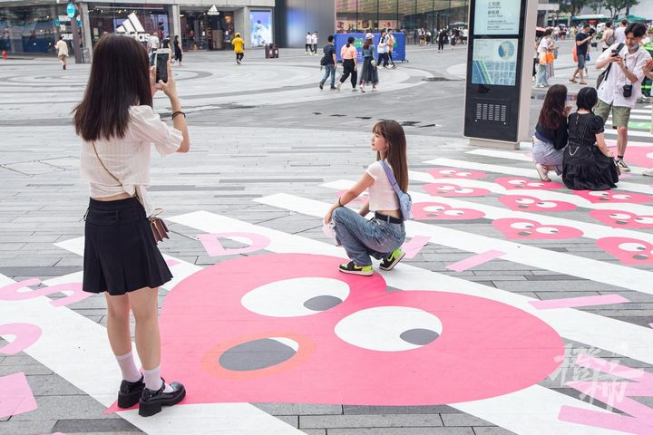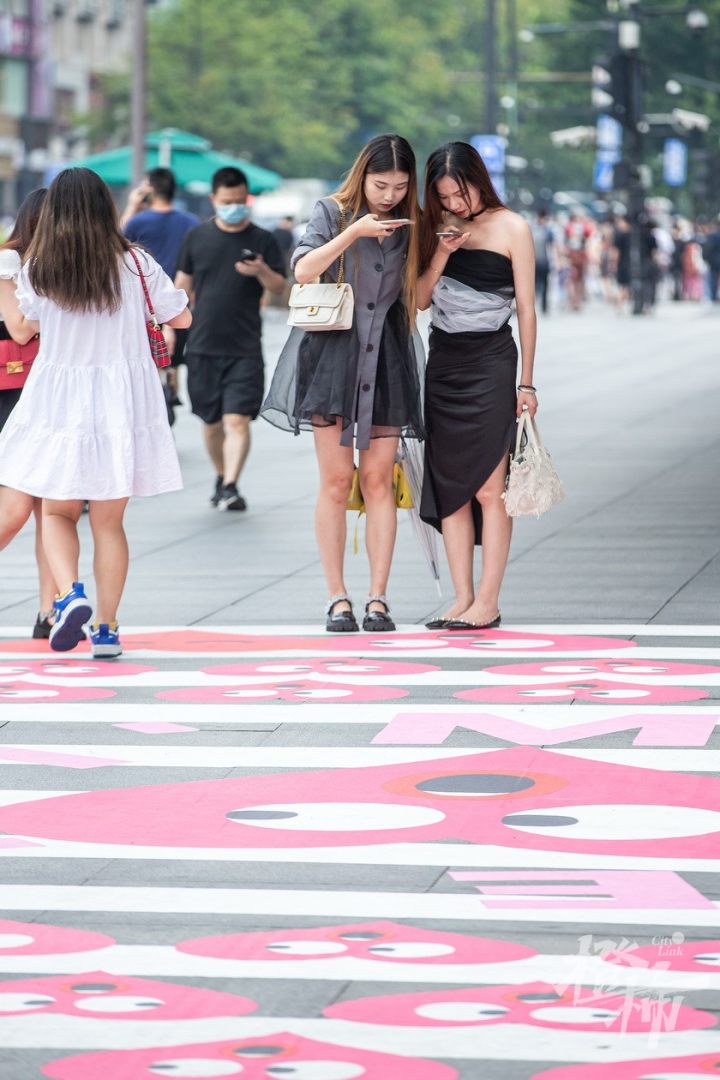 很多路过的市民和游客,也是第一次注意到这条新的斑马线,纷纷停下脚步,拍照留念。