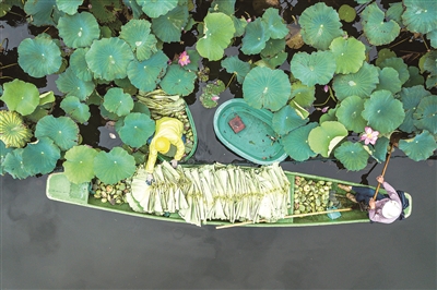 都市快报报道 杭州人对“西湖牌”莲蓬、荷叶,是有情结的。每年这时候,仿佛只有尝过这份来自西湖里的清甜味道,夏天才算完整。
