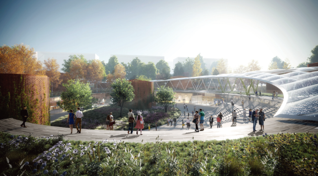 公园以“梦境与时空的对话”的设计理念,结合电竞场馆“星际涡旋”概念,以电竞主题为特色,设置五个系列景观组团与现代情景式体验空间,同时完整保留古通济桥,实现古今文化的交融碰撞,打造国际化城市公园。