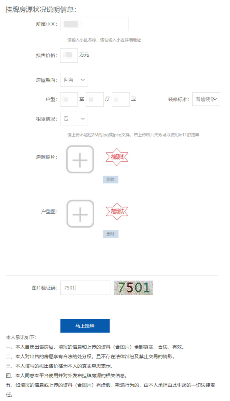 售房者登录平台后,首先进行个人用户注册,完成实名注册后即可使用“个人自主挂牌”功能,在线填写房屋客体信息、房屋权属状况及权利人基本信息,完成房源自主挂牌。