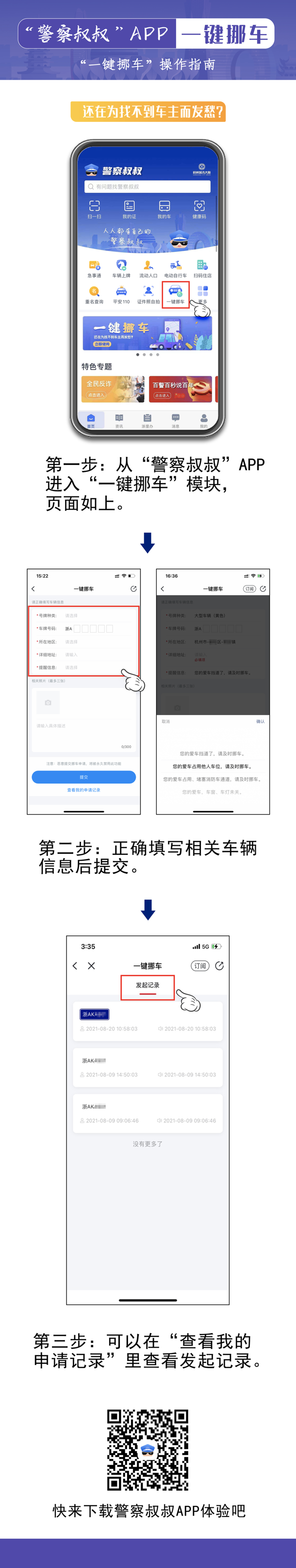除了警察叔叔App外,大家还可以在交管12123上申请“一键挪车”,具体流程和警察叔叔app类似。