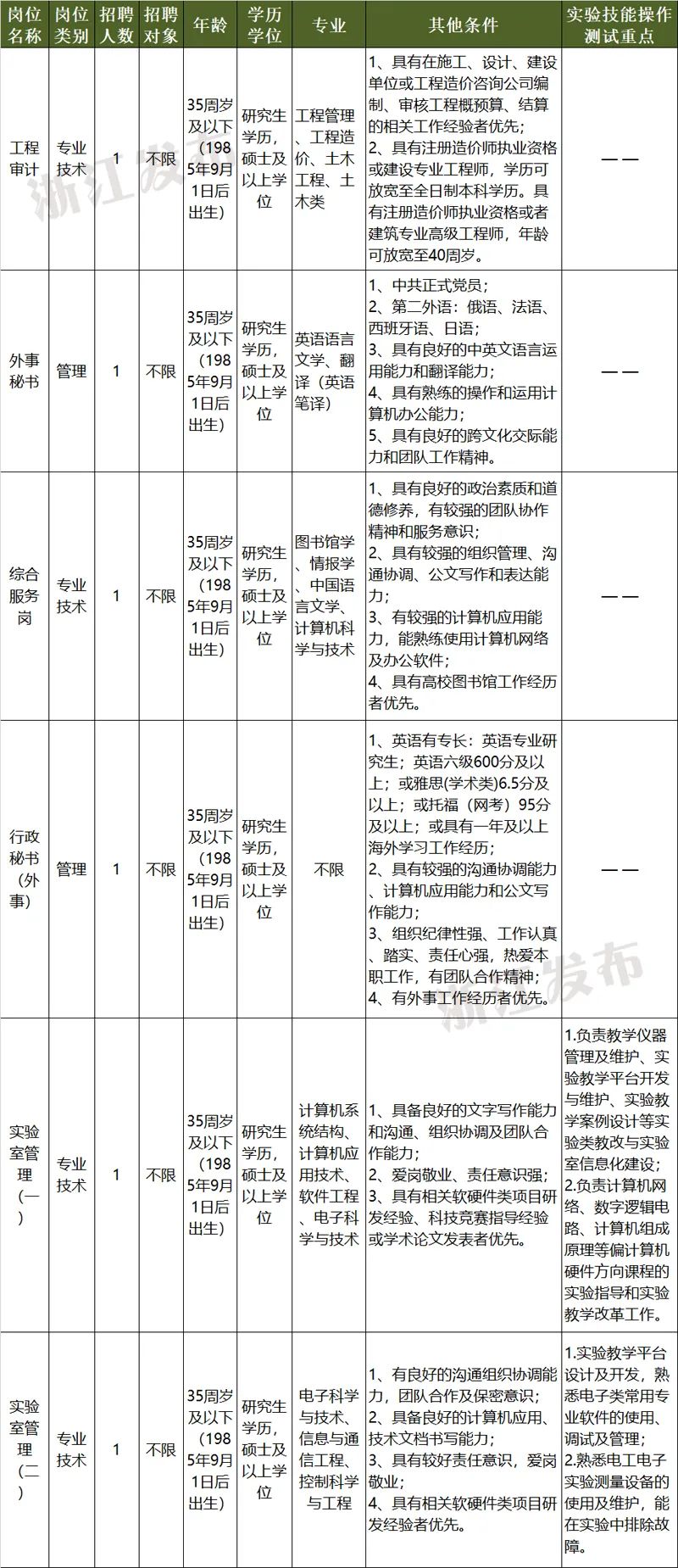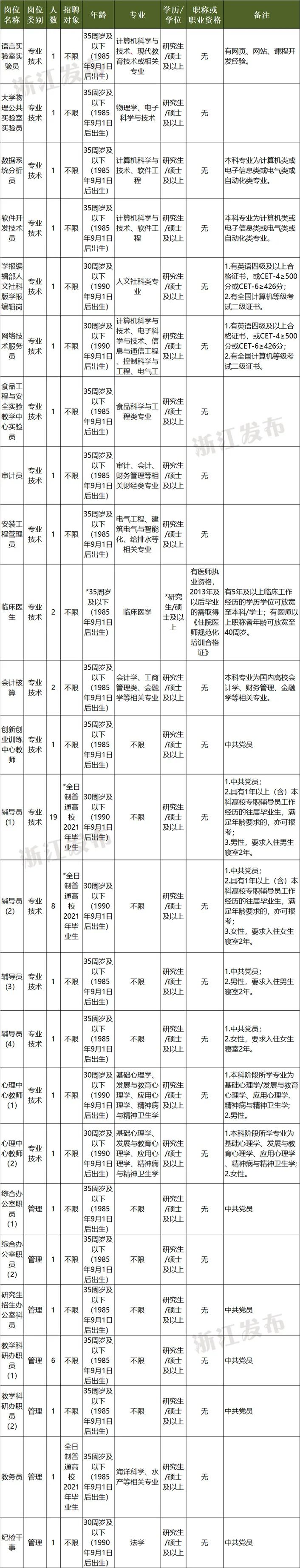 浙江海洋大学为浙江省属公益二类事业单位,预算形式为财政适当补助。本次招聘需求为25个岗位共57人。