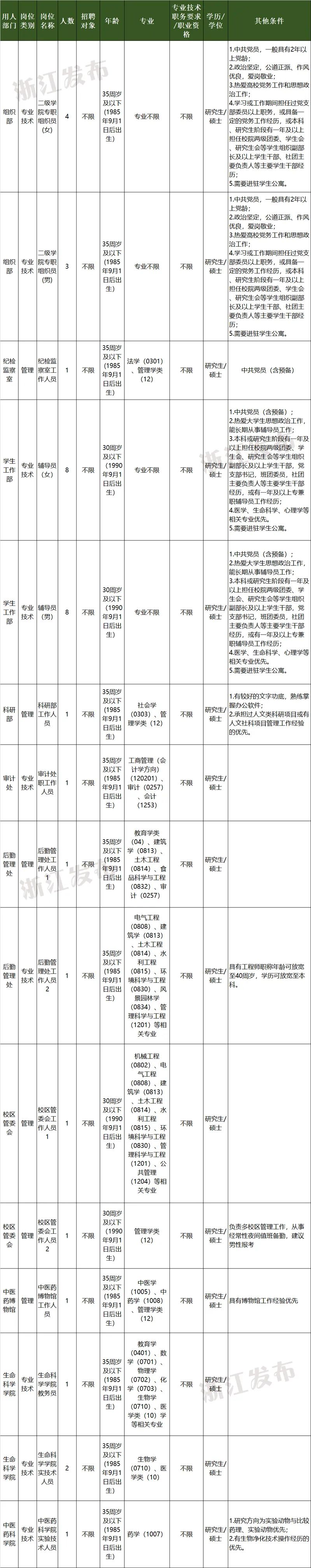 浙江中医药大学人事处:0571-86613535;