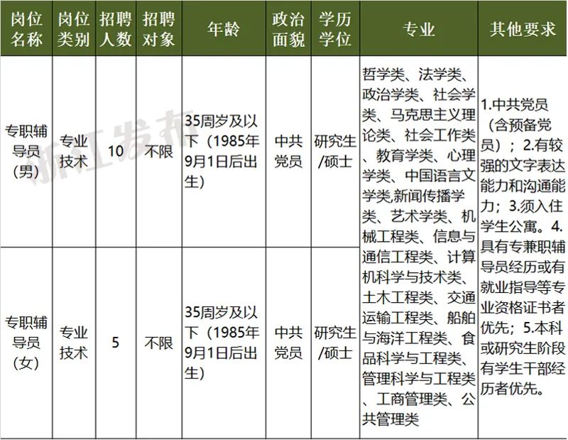 浙江交通职业技术学院为浙江省交通运输厅下属公办高校,为公益二类事业单位,预算形式为财政适当补助。学校位于杭州市莫干山路。本批次招聘需求为2个岗位15人。