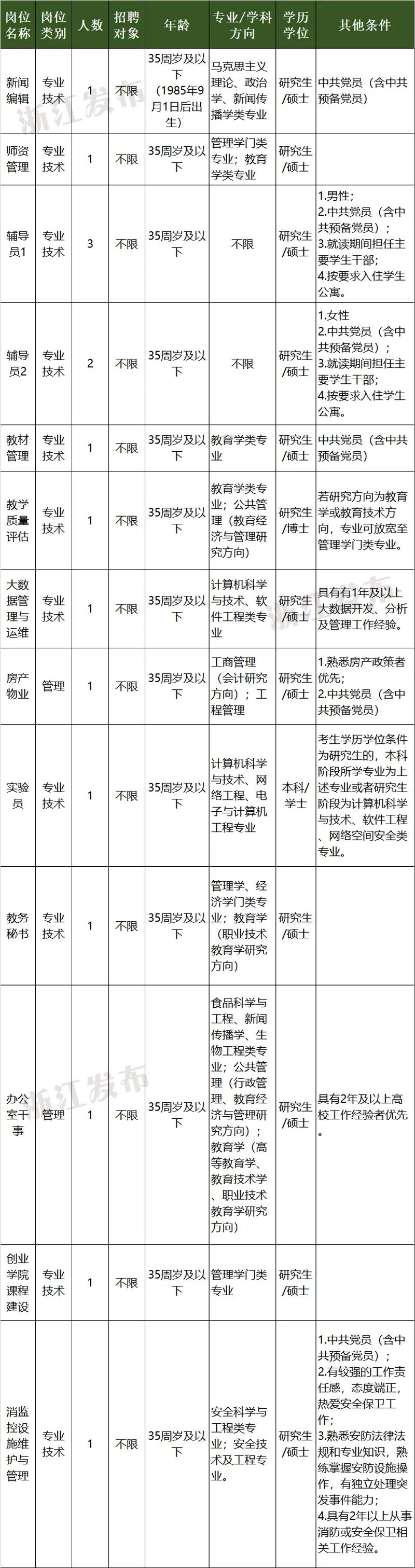 浙江经济职业技术学院是浙江省机电集团有限公司下属全日制公办高职院校,公益二类事业单位,预算形式为财政适当补助。学校位于杭州下沙大学城。本次招聘需求为14个岗位共26人。