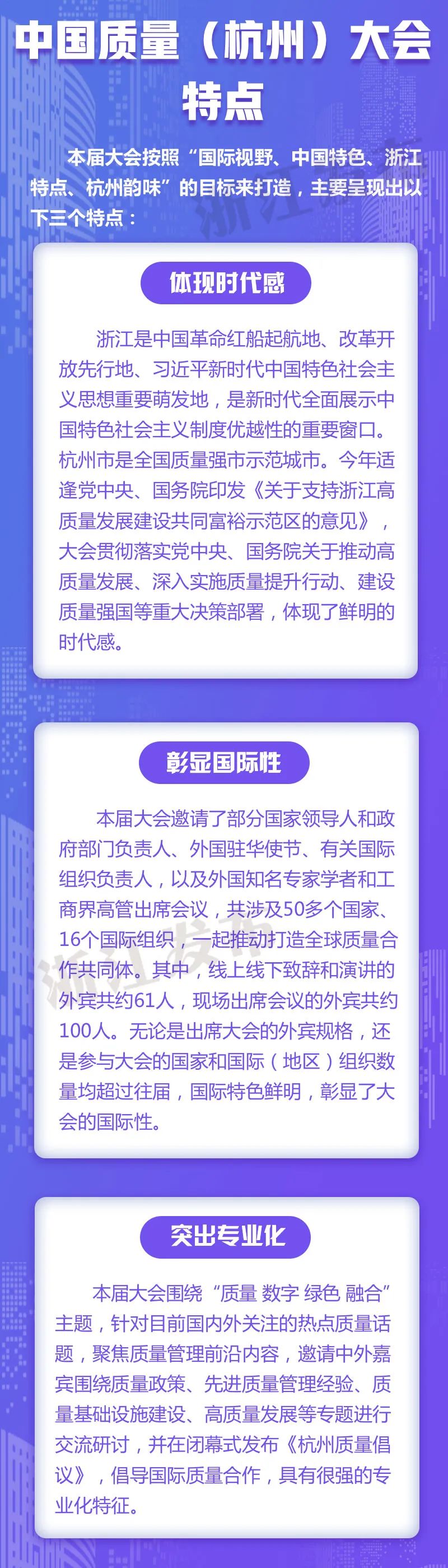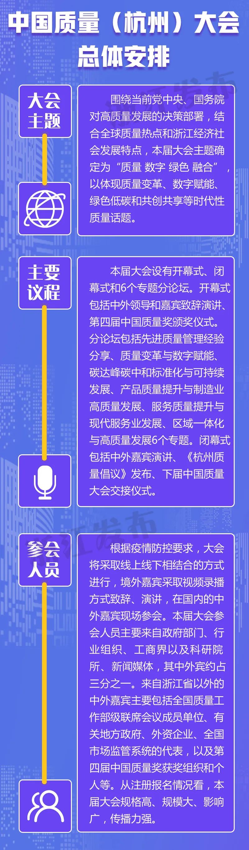 浙江发布消息 经国务院批准,市场监管总局、浙江省人民政府和杭州市人民政府将于9月16日至17日上午,在杭州国际博览中心共同举办中国质量(杭州)大会。