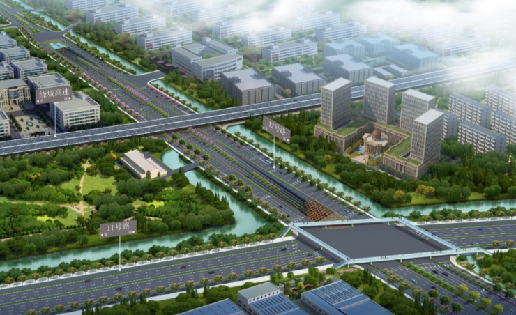 工程共分为三期,预计2022年亚运会前完工。其中,一期位于河庄大道至青六路,全长约4.58公里,设计双向6车道。二期全长约2.4公里,起至滨江二路西段,终于河庄大道,设计双向6车道。三期位于青六路东至苏绍高速,全长5.62公里,设计双向6车道。