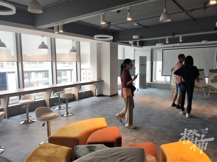 在1号楼的众创空间,进门就能看到共享办公区、共享自习室、会客厅等,随时随地,为灵感服务。在1号楼架空层,还有运动专区,下班后,一起来切磋一把?