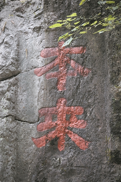 月岩和周围的岩壁上,除了“光影中天”,还有着“无影相”“本来面目”等摩崖题刻,想必都是文人墨客留下的。