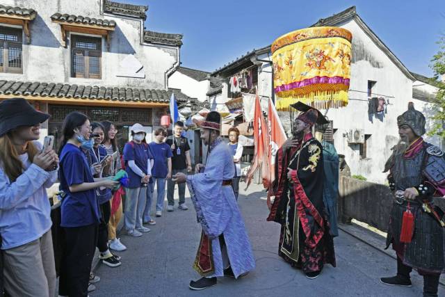 杭州日报讯 逛古街、观砚池、喝米酒、掏牛锅、遇孙权、话三国……9月28日,富阳龙门古镇“2021‘富春山居•味道山乡’之龙门庙会”正式开启。本届龙门庙会结合古镇复兴,以“忆•时节——古镇喊你过节头”为主题,依托以文化礼堂为核心的文化阵地,围绕“忆•儿时滋味”“忆•热闹时节”“忆•古韵传承”三个篇章举办丰富多彩的民俗活动,迎候国庆假日期间的八方游客。