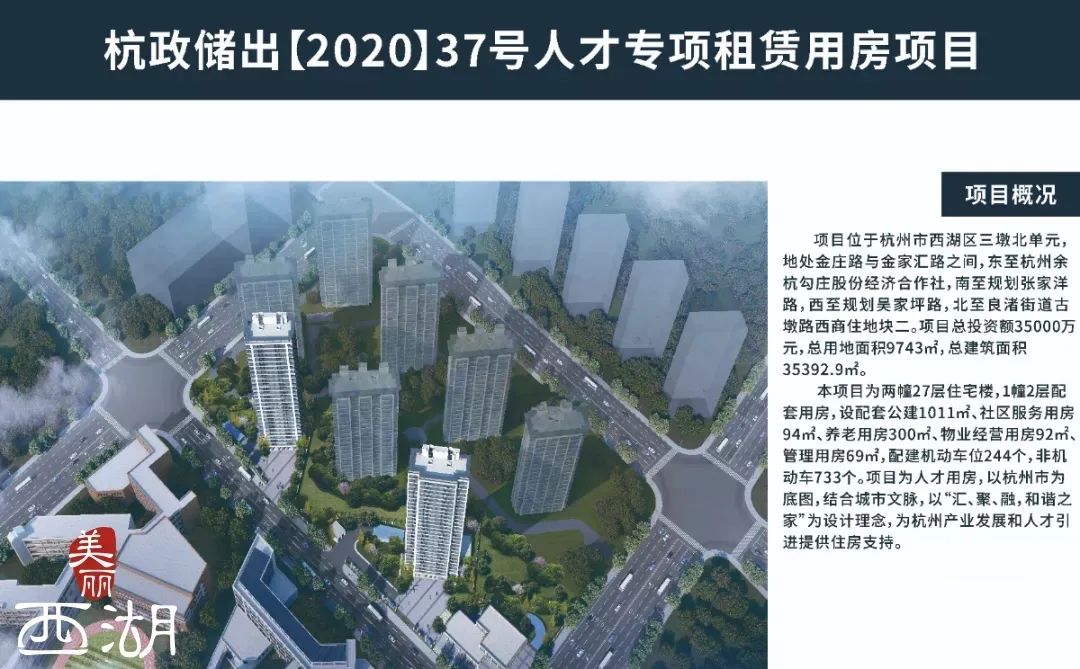 民生事业项目7个,总投资100.2亿元,2021年计划投资29.7亿元。其中杭政储出[2020]37号杭州居住发展项目拟建设人才专项租赁用房,为引进高端人才和集聚产业发展提供民生保障。龙坞单元XH1604-R22-07地块服务设施项目拟建设集农贸市场、体育活动中心、文化活动中心、地下停车库等于一体的服务配套,将进一步完善区域配套。之江度假区单元XH1712-09地块幼儿园项目拟建设12班幼儿园,附设4个托班,将有效解决附近学龄前儿童就学问题,推动基础教育发展。