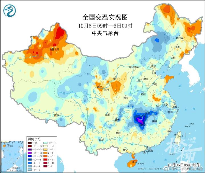 3、点名河南,夹在中间,前期跟着南方高温,后期跟着北方降温,24小时降温20℃,一日经历盛夏到初冬。