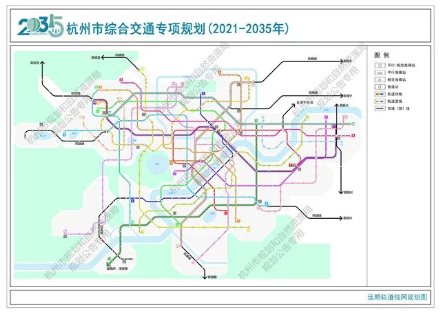 轨道交通方面,至2035年,市区城市轨道交通线网总里程达到1100千米以上,轨道交通成为公共交通出行的主体。通过完善市域(郊)铁路网络和轨道快线网、城市普线网、片区局域线网,促进都市区一体化发展、核心城区与九大星城的快速联动,满足人们多样化轨道出行需求,打造“轨道上的杭州”。